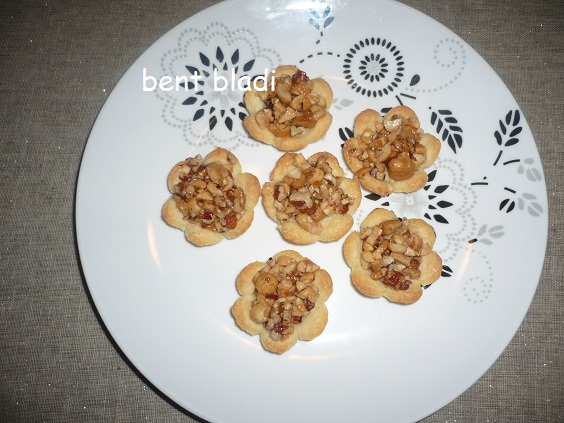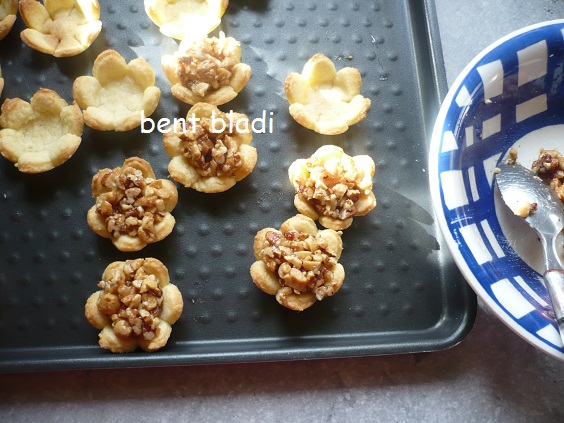 بعد ان تطهى نخرجها من الفرن نجمع الفواكه الجافة بالناباج او العسل و نعمر بها حلوة السليلات