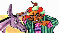 فتساقطت النقود من فمه.. فتجمع الناس حول المحتال الذي أخبرهم.. أن الحمــار كلما نهق تتساقط النقود من فمه..
