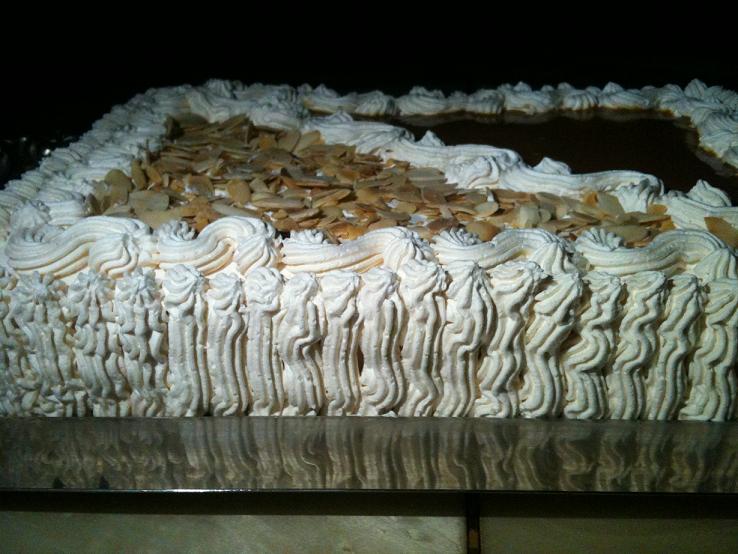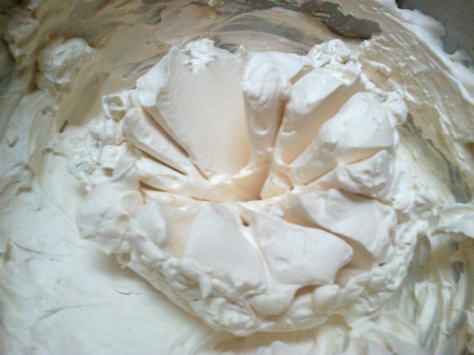 نضع طبقة من الجينواز و فوقها كريم فريش المطرب ليس المنسم بالكراميل