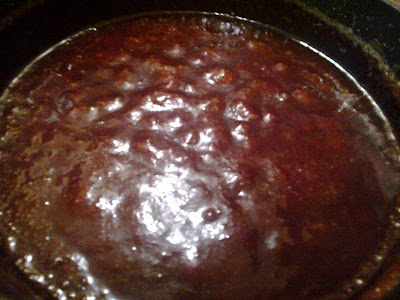 بعد ان يذوب السكر نترك الكراميل على النار قليلا ثم نزيله
