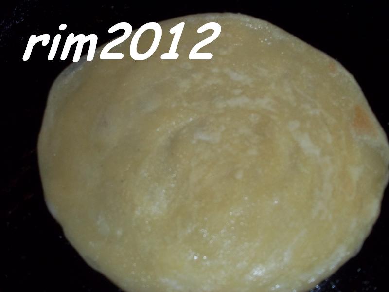 يبسط العجين رقيييييق جدا يدهن بخليط الزبدة و الزيت و يرش بالفينو