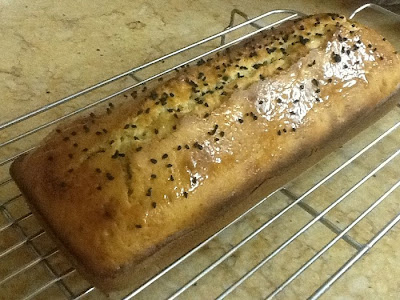 ثم نصب الخليط في قالب الكيك المدهون بالزبدة و المرشوش بالدقيق