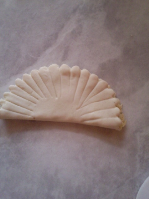 نقطع دوائر من العجينة وكل دائرة تقسم على 02 نحصل على نصف دائرة