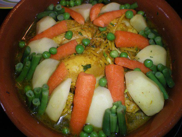 طريقة تحضير طاجين الدجاج بالخضر على طريقة سكان الجنوب بالصور