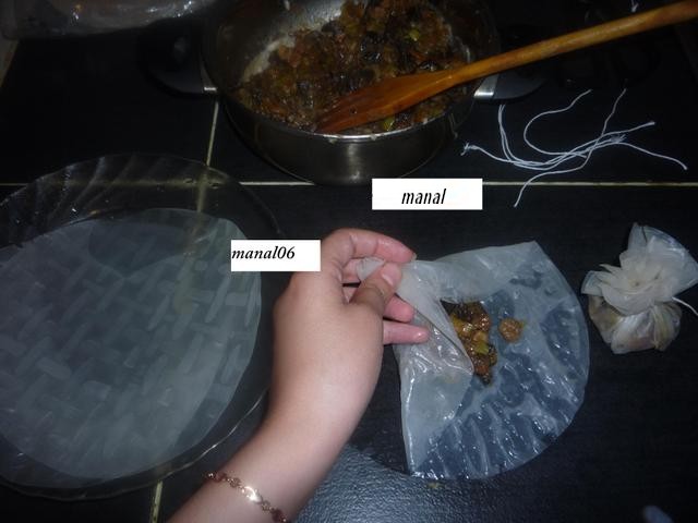 وعمرت الحشوة فورق الارز انا استعملت 2 ورقات فالوحدة باش ماتقطعش