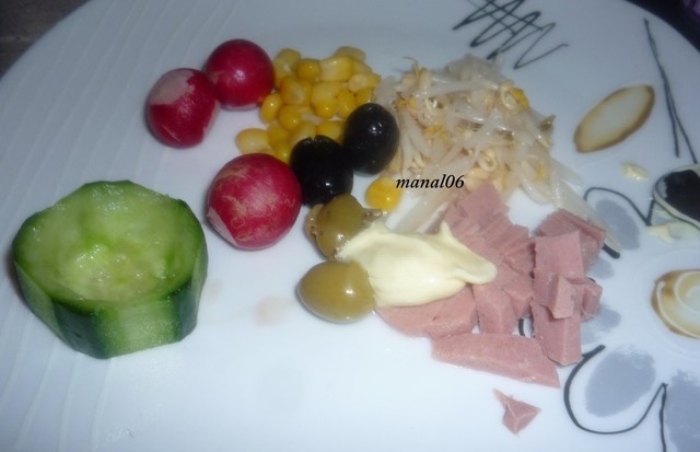 كويسات لخيار:عمرتهم ب:كاشير مقطع رقيق+زيتون اخضر واسودمقطعين رقاق+درة+صوجا+المشتي مقطع رقيق