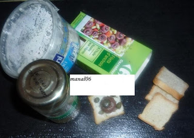 نحتاجو ليهم؛خبز الطوست بحجم صغير+صلصة الخيار+شرائح ليزونشوا+حبات الكبار