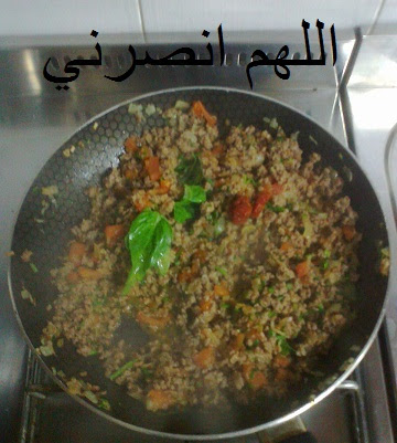 نشحر البصلة والتومة في زيت بلدية تم نضيف ليها الكفتة ونخليها تتشحر مزيان