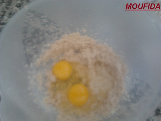 في مول مدهون بالزبدة ومرشوش بالطحين نكبو فيه الخليط