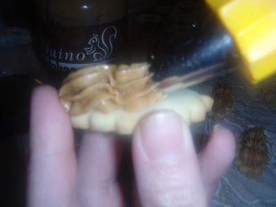 ها الشكل نرشه بالسكر الصقيل و نلصق واحدة مع الاخرى بالمربى