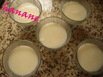 و نترك الخليط على النار مع التحريك المستمر حتى يعقاد و نصبه في كؤوس التقديم و نتركه حتى يبرد