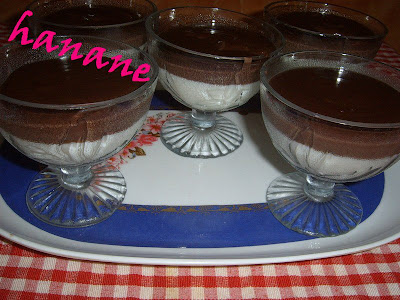 نصف لتر حليب + سكر + معلقة كبيرة كاكا و + 5 شكلاطات + 2 معالق كبار مايزينة (نشا)