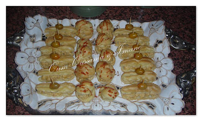 المقادير: 150 غ زبدة بونة + 225 غ دقيق + 6 بيضات + 350 غ ماء + م ص ملح + قليل من السكر