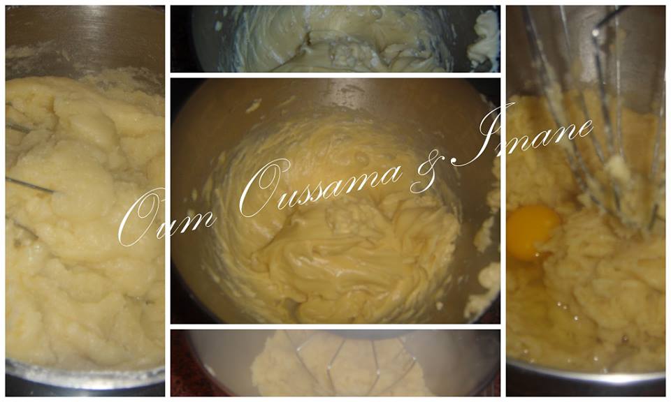 طريقة العجين: نضع على النار الزبدة و الملح و الماء و السكر حتى الغليان، ثم نضيف الدقيق شيئا فشيئا مع التحريك المستمر بملعقة خشبية حتى