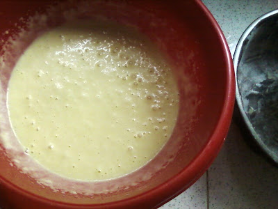و نعودو نخلطو و نكبو الخليط فمول الكيك مدهون و مرشوش بالطحين