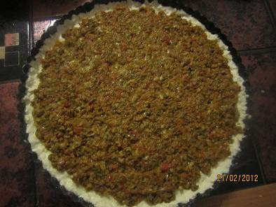 طريقة التحضير: نشحر البصل والفلفل مع الملح والزيت حتى ينزل شوية من بعد كنزيدو جزر كنقليوهم شوية ثم نضيف الكفتة و العطرية ونخلوها الطيب مزايان منبعد كنزيدو المعدنوس وكنطفيو لنار أنخلها تبرد ثم نضيفلها الزيتون والجبن والبيضة