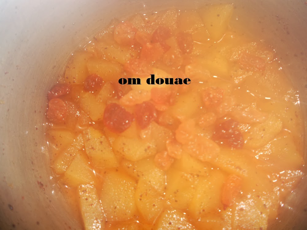 مين بدا يتعسل التفاح زدت عليه شوية زبيب مرطب فلما خليت الكل حتى تعسلو مزيان