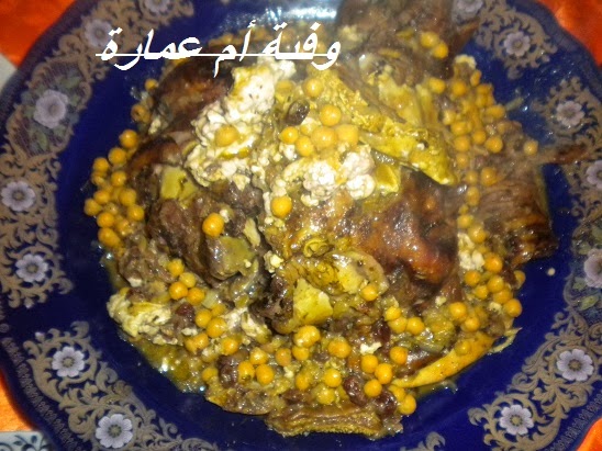وأكيد نرووه بالماء ، من بعد فش تنحل الكوكوت كنزيد الزبيب والحمص ، الحمص درتو مع الزبيب حيت كان عندنا غي المعلب أما إلا كان ديال الدار دروه مع الراس يطيب ، المهم كنرجعو نخلوه يطيب مازال بش يتشربوا نكهة الراس وتختار المرقة شوية