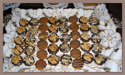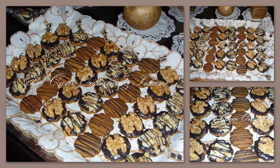 بعد ما طابت غطست وجهها فالشكلاط ونعمل شوية لوز إيفيلي وفوقهم خطوط بالشكلاط والتانيين نزلت فوقهم حبة كركاع