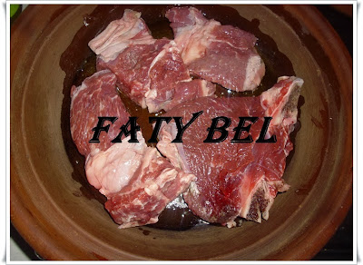 كنشحرو اللحم مع زيت الزيتون و نضيفو ليه البصل مشنف و التوابل . ملح. ابزار . سكنجبير . خرقوم . تحميرة و ضريس ثوم محكوك
