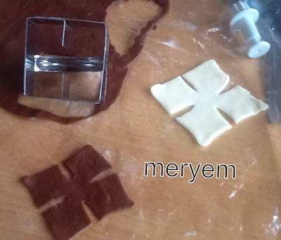 دأبا نوري لكم هاد الكموصة فالصراحة يمكن لكن تعملو غير دائرة وحدة من العجين ولكن أنا بغيت نجرب. نعمل زوج عجبني منظرها هاكا تنقطعو زوج دوائر نلصقو بعضهم بالبيض. نححطو كويرة من العقدة ونجمعوها بحال الصرة وصافي مفهومة وهادي صورة تطبيقه