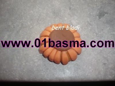 كنورقو العجينة البرتقالية رقيقة بزاف،كنقطعوها بالمرشم وكنوضعو كويرة من الحشو