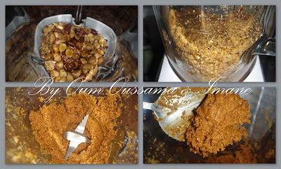 هنا عملت تقريبا 100 غ كاوكاو محمر ومقشر طحنتو مع إضافة 2 م ك عسل وشوية زيت أركان وممكن تستعملو زيت الرومية