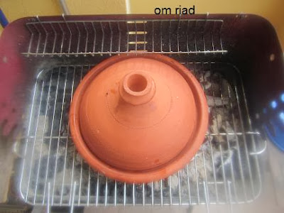 ثم نغطي الطاجين و نضعه فوق الفحم لي يسخن و تتنكه اعناصر ببعض