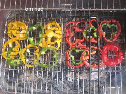نرش الفلفلة و الطماطم بالملح و نذهنها بقليل من زيت الزيتون