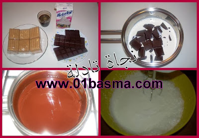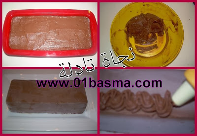 دخلتها المجمد حتى قساحت قلبتها في طبق وضعت موس الشكلاط الباقي في جيب حلواني و زينت به