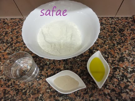 1ـ كنجمعو جميع المقادير و نخدمو العجين بيدينا شويش لازم يكون لين و ماكيلصقش باليد و نغطيوه و نخليوه يخمر حتى يضاعف الحجم ديالو ( بالنسبة للماء نتوما كتعجنو و نتوما كضيفو الماء على حسب كل دقيق انما تقريبا غدي تاخد ليكم 140 غ ديال الما ) .