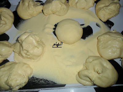 قسمت العجين لكرات صغيرة وعبرتهم باش يكونو متساوين كاملين .فالحبة 80 غرام الكمية خرجات لي 12 حبة