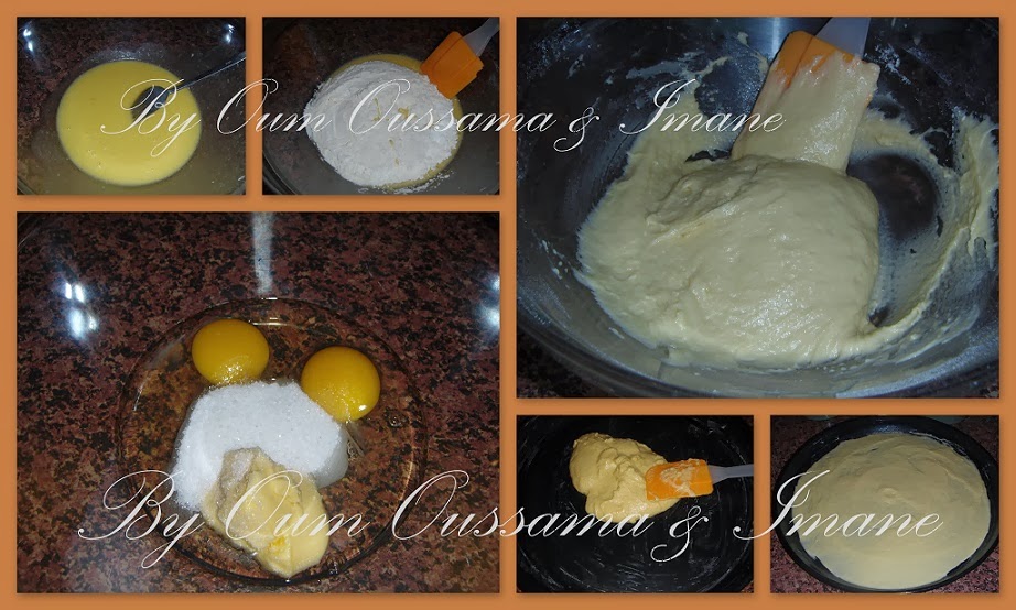 طريقة العجين : نطرب البيض مع الزبدة والسكر غير حتى تدوب الزبدة ومندخلش الهوا للخليط