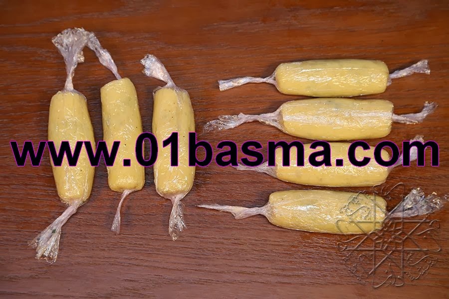يلف عجين البطاطس حول الحشوة ثم يغلف بالبلاستيك الغذائي