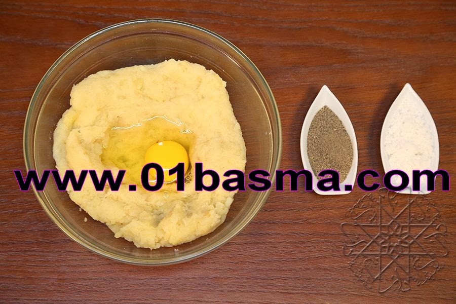 تقشر البطاطس، تهرس، تضاف إليها البيضة، الملح والفلفل الأسود.