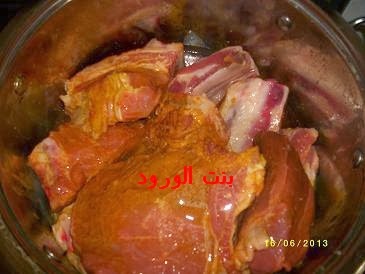 في الليل قبل ماننعس رقدت اللحم في ليقامة باش تدخلو مزيان مع 8 د الصباح حطيت الطنجرة فوق النار ونقصت عليها لاقصى درجة باش تطيب على خاطرها
