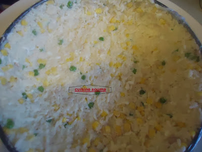 ثم نغطي مرة أخيرة بالأرز نزيل بعدها المول الدائري
