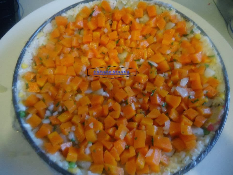 ثم نغطي مرة أخيرة بالأرز نزيل بعدها المول الدائري