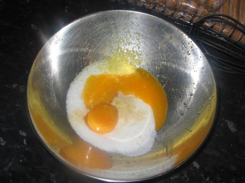 كنخلط صفار البيض مع السكر و الڤاني و قشرة الحامض محكوك و كنضربهم مزيان غير بالخلاط اليدوي حتى يولي الخليط ابيض