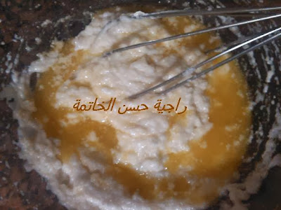 ثم كنضيفو أبيض البيض ونخلطو ببطء