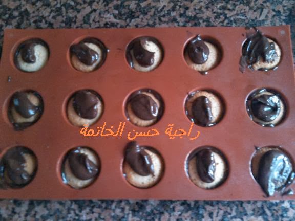 ونحطو فيهوم الكاطو فينونسيي ديالنا ونبركو شوية باش يطلع الشكلاط مع الجناب دالحلوة ونغطيوه من الفوق بالشكلاط