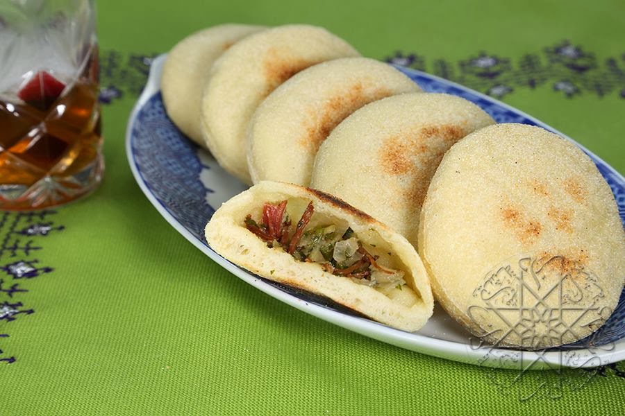 تخلط كل المقادير للحصول على عجين متجانس. يدلك العجين لمدة 10 دقائق حتى يصبح لينا وطيعا.