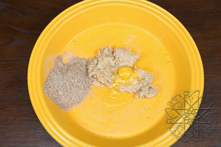 يضاف الدقيق والخميرة ويخلط العجين جيدا حتى يصبح متجانسا
