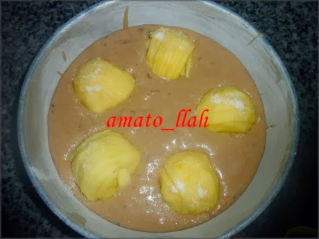 ممكن ضيفي اللوز ايفيلي اختياري ثم دخليها الفرن لتطهى مثل أي كيكة عادية وبالصحة والراحة
