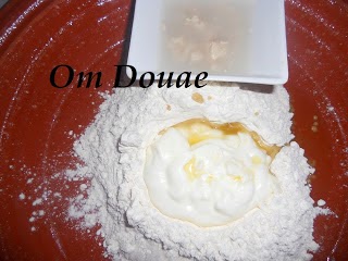 حاجتنا زلافة لفورص نص حك ياغورت طبيعي معلقة كبيرة زيت لعود شوية ملح شوية لخميرة مذوبة فالماء دافي