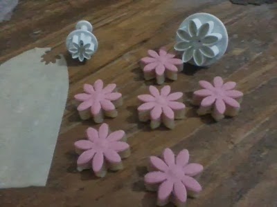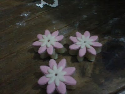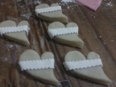 نلون شوي د العجين باللون الأبيض و شوي باللون الوردينقطع أشرطة من اللون الأبيض و قليبات صغيورين من اللون الوردي