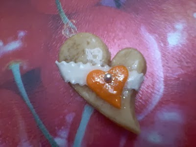 نأخذ قلبين من العجين و نحطو بداخلهم قلب من اللوز و نلصقو بأبيض البيض