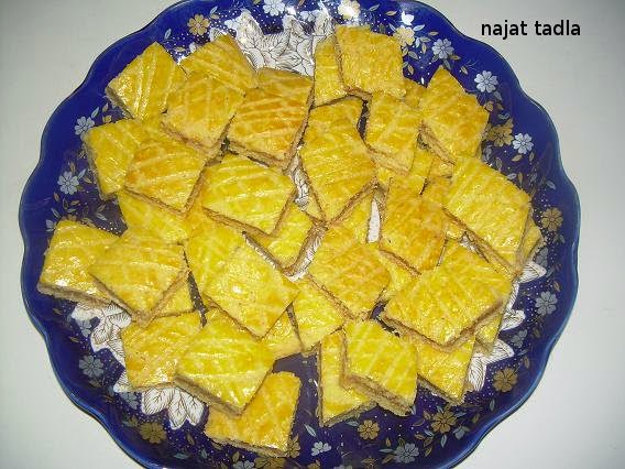 بعد ما يخرج من الفرن نقطعوه وهو ساخن مربعات أو معينات