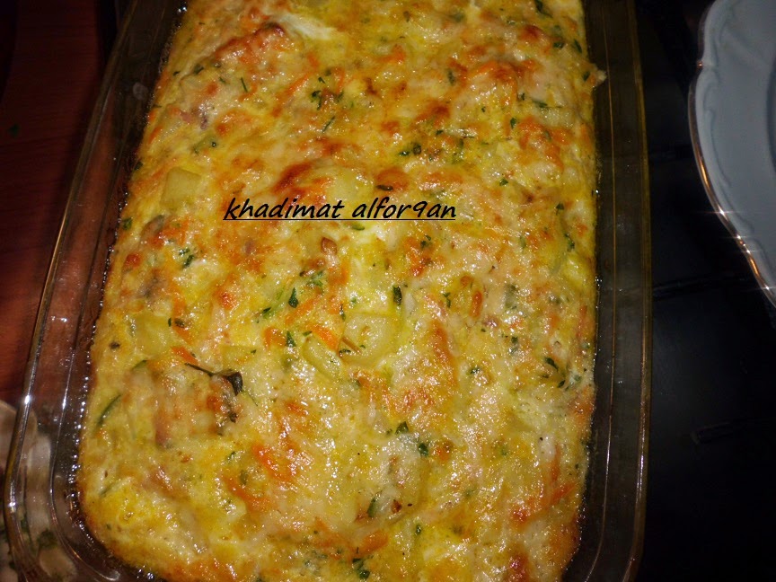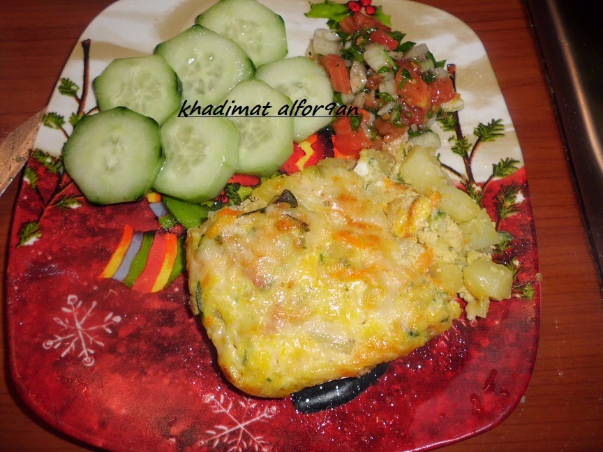 السلام عليكم اخواتي ليوم بغيت نقدم لكم هاد lgratan سهل ابنين يصلح لعشا أو كمقبل وبعد لمرة تنعمر به حتى خبز البنيني اليكم المقادير والطريقة صور ستوضح لكل غادي نحتاج بصلة مشلضة نشهرها فشوي زيت لملح البزار نزيد بطاطا مربعات صغيرة مسلوقة نصف سلقة ونخلو كلش يتقلى ،من بعد نزيدو خيزو سوان مسلوق أو محكوك قرعة محكوك لمهم الخضر لعندكم بعد لمرات منيل كتشيت لشلاضة جردة كندير بها هاد لوصفة ف لعشا ، هكدا مكيدع ولو، نخلو الخضر تشحر مزيان ، أنجب جبانة خرى نفقسو فيها البيض على حساب الأفراد أنا درت غير 3 زيدي طن شويت لملح البزار شوية معدنوس ، ربع كاس حليب شويت خميرة كيماوية باش تجي منفوخة وسهلا فتقطع وباش تاخد شكل زوين ، نخلط هادشي ونزيد عليه الخضر لشههرنة ، نصبو فلمول لفرن نراش لفرماج أحمر محكوك ،وإلى الفرن يثمر لفرماج يتقدم شكن بصحتكم وراحتكم ، كلو رجاي فيكم دعوة بضهر الغيب ولا تنسونا من صالح الدعاء ، أنا هنا صدمت بلعشة بطبق مع شوية شلدات ماتش ودوائر الخيار ، بصحتكم مجدداً