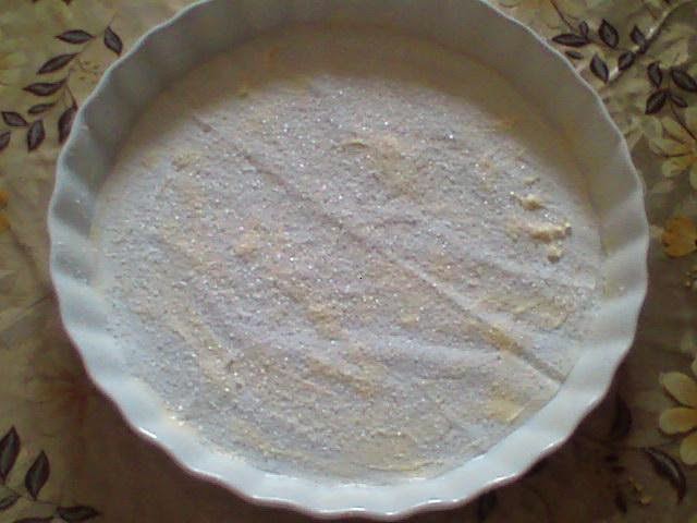 نصففها فوق القالب المجهز مسبقا كما هو مبين في الصورة.